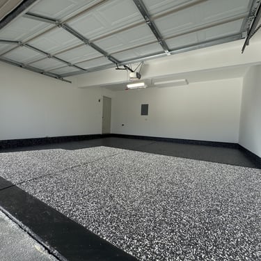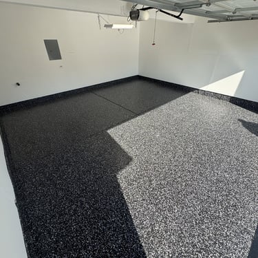 The owner of this home wanted to go with a darker design while also painting the walls to showcase his black SUV. We elected to install ProRez's Biothane basecoat tinted black, raven colored flake from Torginol, and ProRez's ProSpartic topcoat. The floor was completed in one day and we returned later that week to paint the walls and ceiling.