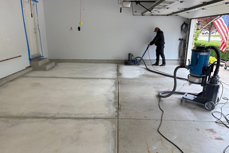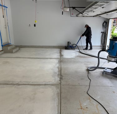 Please remove all belongings on the floor 24 hours prior to scheduled start. If you want to give it a quick sweep and blow out the cobwebs it is appreciated, but our team will prepare the floor. The concrete preparation process includes diamond grinding and a lot of dust is created. We will seal off entryways to the home, however if you have cabinets or electronics Hanging on the walls it is advisable to seal them off with poly sheeting or visqueen.